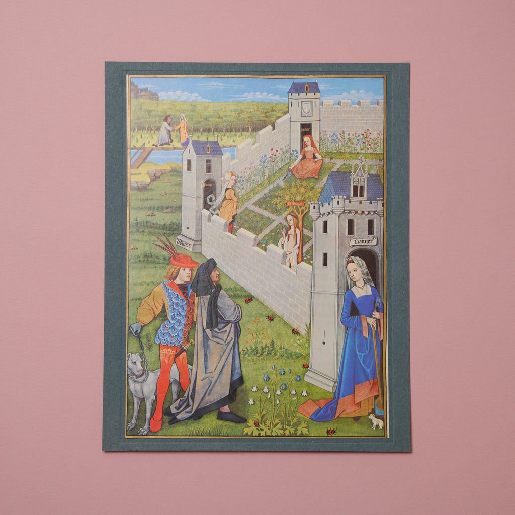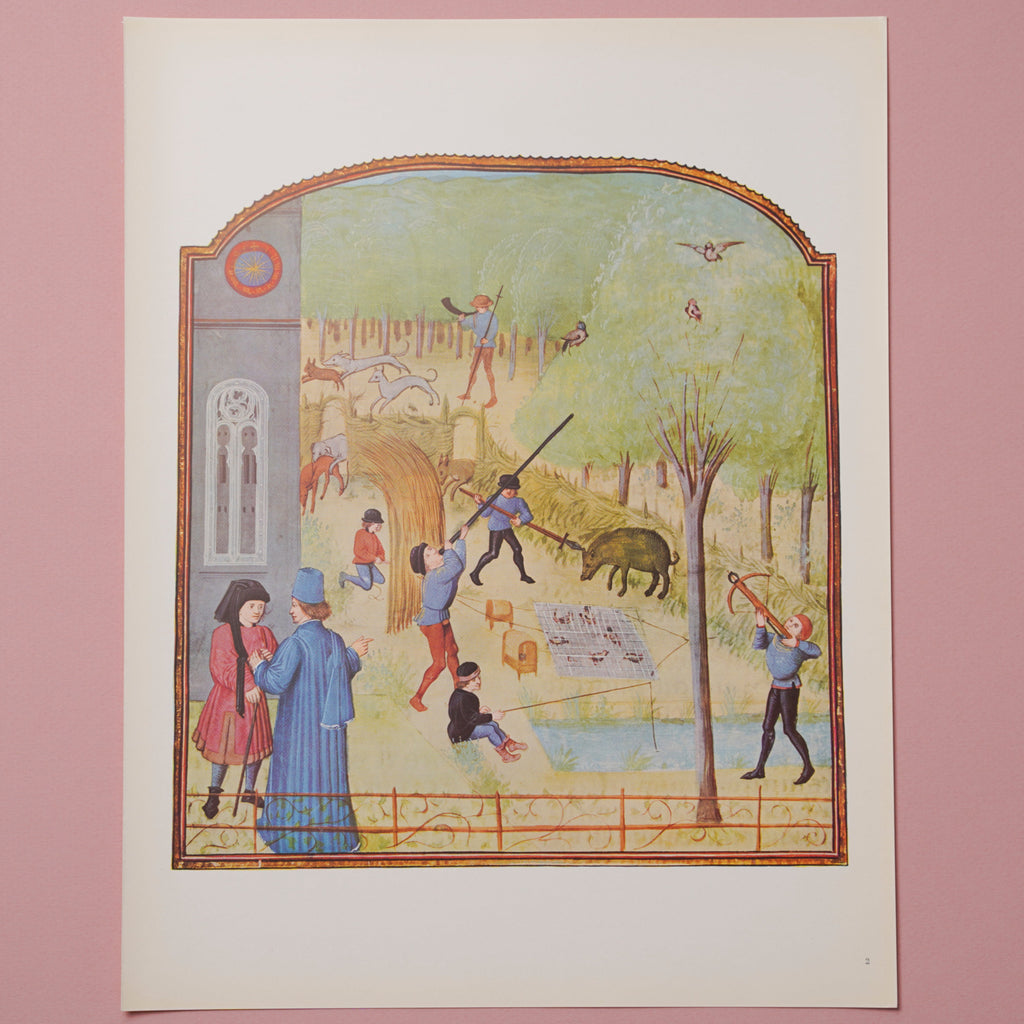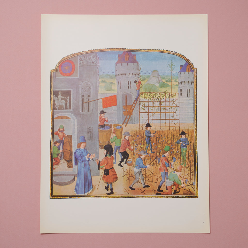Vibrant full color vintage prints of works of art from the Middle Ages on thick glossy 9 3/8" x 12 1/8" paper with a light patina.