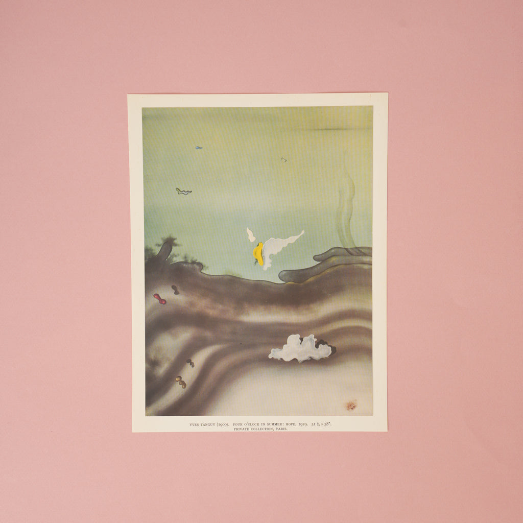 GOLDEN RULE GALLERY VINTAGE ARTA charming vintage 1950 tipped in art print of Four O'Clock in Summer: Hope (1929) by Yves Tanguy. Image hand tipped-in on a sheet of heavy paper and affixed to chipboard backing for maximum ease of styling and propping.