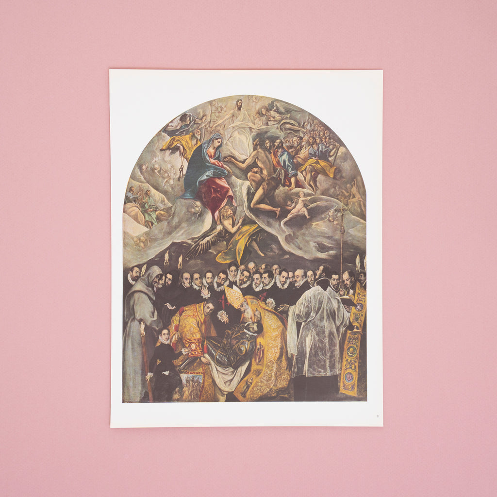 GOLDEN RULE GALLERY VINTAGE ARTA mid-century print of El Greco's The Burial of the Count of Orgaz (1586) on 9" x 11.75" thick glossy paper with hints of patina.