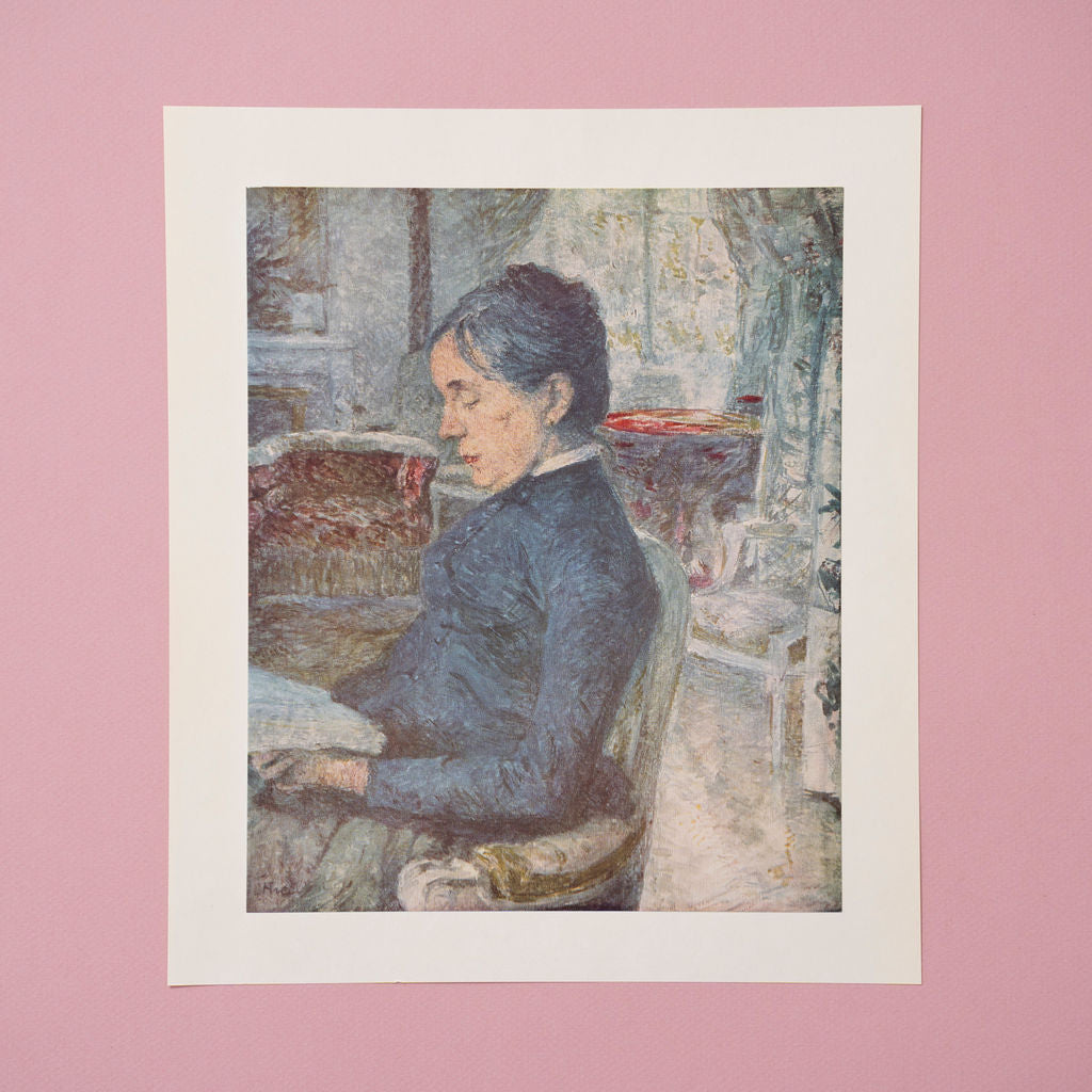 GOLDEN RULE GALLERYA beautiful vintage offset lithograph of Portrait of the Artist's Mother Reading (1887) by Henri de Toulouse-Lautrec.